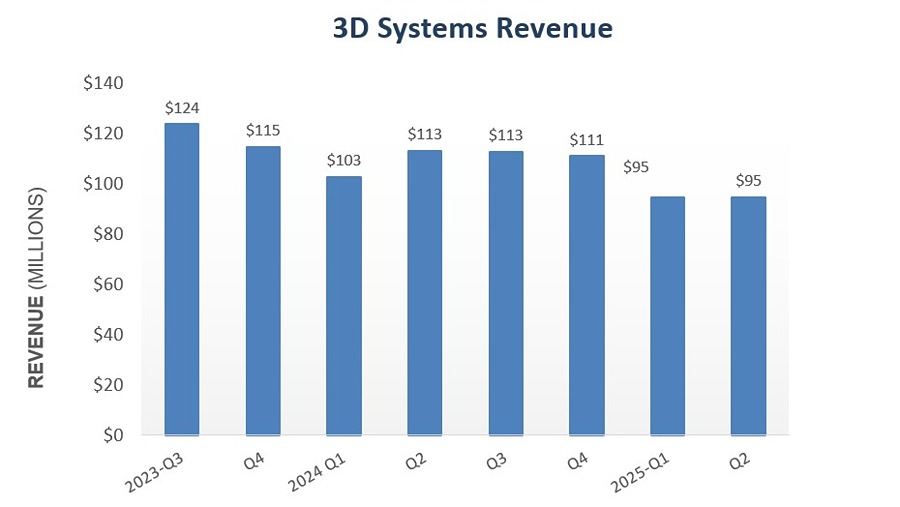 ROCK HILL, SC, Aug 12, 2025 – 3D Systems has announced its Q2 FY25 results, reporting $94.8M in revenue – a 0.3% increase from $94.5M in Q1 FY25 – with a profit of $104M.
