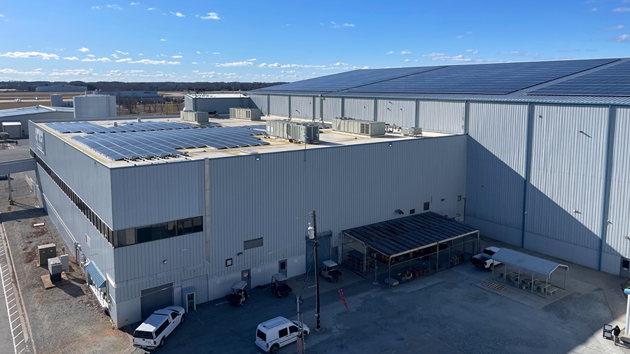 The solar system can send excess electricity back to the grid when panel output exceeds facility demand. The installation forms part of the company’s sustainability efforts at the Greensboro site.