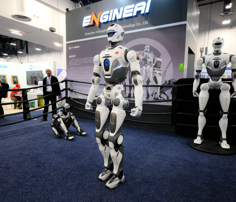 One of the more eye-catching exhibits featured a ping-pong-playing robot from the Chinese firm Sharpa, designed to spotlight advanced robotic hand dexterity. Though its game wasn’t fast-paced, the robot illustrated how robots can learn and mimic complex, dynamic tasks. Nearby, humanoid robots styled as boxing figures entertained attendees by shadowboxing in a small ring. Their unpredictable movement and occasional stumbles drew laughs and underscored the challenges of balancing agility with stability in humanoid designs.