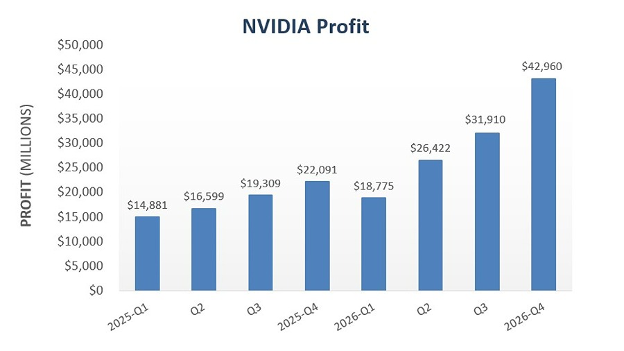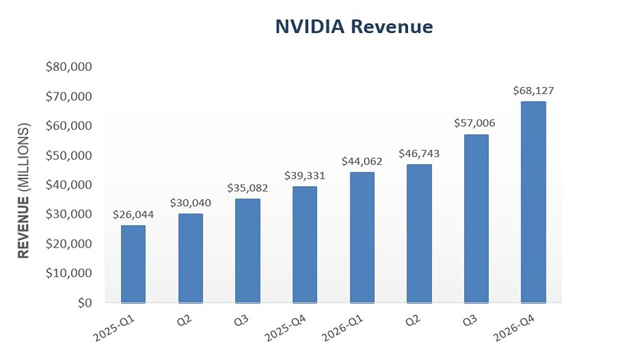 NVIDIA has announced its Q4 FY26 results, reporting $68B in revenue – a 19.5% increase from $57B in Q3 FY26 – with a profit of $43B.