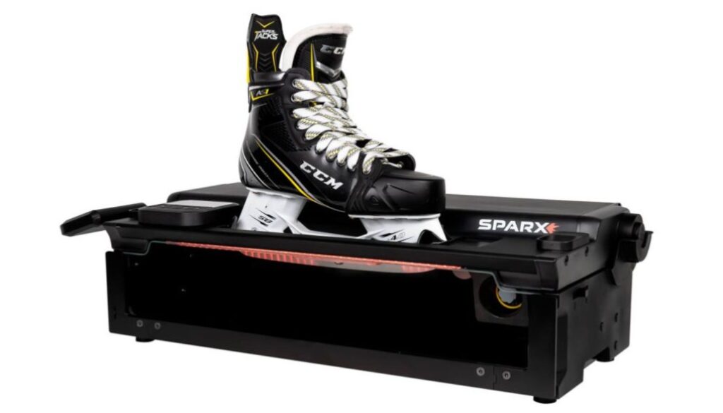 Founded in 2013, the company approached the challenge from an engineering perspective, identifying the key variables in blade sharpening: consistent pressure, controlled rotational speed, and precise shaping. By automating these constants, Sparx created a tabletop device that removes much of the variability associated with manual sharpening. Users simply insert the skate, and the system handles alignment and grinding with minimal intervention.
