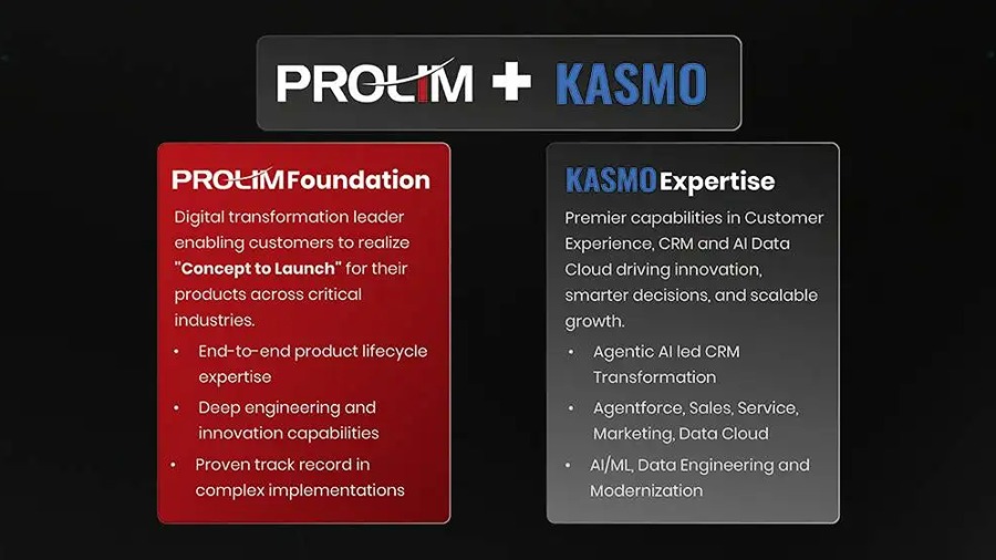 PLANO, TX and BANGALORE, India, Dec 23, 2025 – PROLIM has acquired Kasmo Digital, expanding its role in the Salesforce and Snowflake ecosystem. The acquisition adds more than 200 consultants and strengthens capabilities in cloud-based CRM, AI, and data cloud solutions.