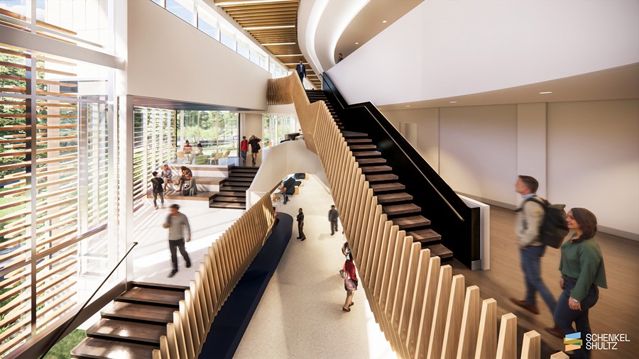 Schenkel Shultz is designing a hub that offers academic and social support for all students, including international, commuter, and student-athlete groups. The project focuses on improving access to advising, health labs, classrooms, and food service areas. It will also include common spaces for students and faculty to connect outside regular class sessions.