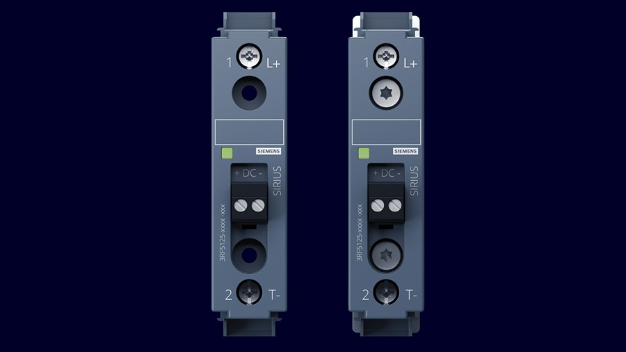 The SIRIUS 3RF5 switching device performs high-frequency switching of resistive loads in DC applications. Its solid-state design reduces mechanical wear during switching cycles and supports continuous operation in industrial systems. The device carries the Siemens EcoTech Label, highlighting its sustainable and transparent product design.
