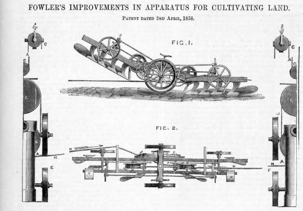 Fowler’s early innovations focused on ploughing and land drainage. Between 1850 and 1864, he took out more than thirty patents for ploughs, reaping machines, seed drills, traction engines, and related mechanisms, reflecting a relentless drive to refine and expand his ideas.