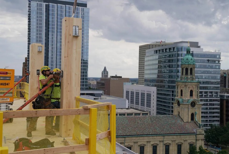 Timber plays a central role because of its lightweight properties and lower carbon footprint compared to steel and concrete. Its reduced weight makes it particularly suitable for adding extra floors to existing buildings without requiring major structural reinforcement. This enables architects and engineers to expand capacity in dense urban areas where space is limited and redevelopment is disruptive.