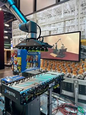 Universal Robots’ UR20 robot arm and Robotiq’s PAL Ready palletizing cell form the core of the system, integrated with Siemens’ automation hardware and Digital Twin Composer software launched at the event. At Siemens booth #8725 in the LVCC North Hall, a photorealistic digital palletizing cell will run alongside a physical hardware setup, linking simulation and on-floor operation.