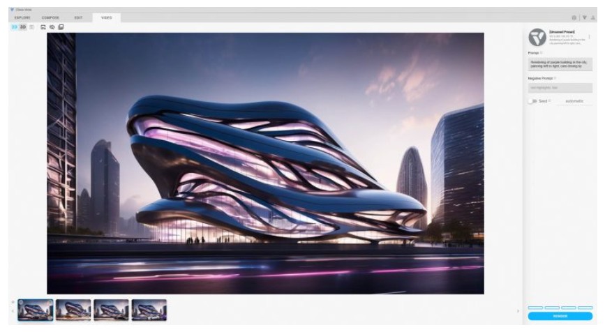 Veras 3.0 pushes further: it supports short video outputs. Designers can generate dynamic pans, zooms, animated lighting effects, or subtle motion in scenes, automatically guessing what should move (e.g., fireplaces, ambient people) based on prompts. The system uses Stable Diffusion as its core engine, with layered capabilities allowing users to choose among different model versions for geometry fidelity or style.